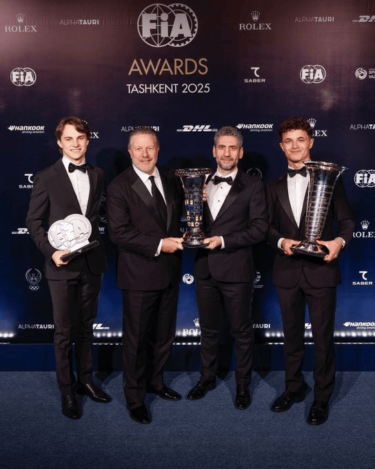 迈凯伦车队同期领取了车队总冠军的奖杯,另一位车手奥斯卡-皮亚斯特里领取了年度季军奖杯。