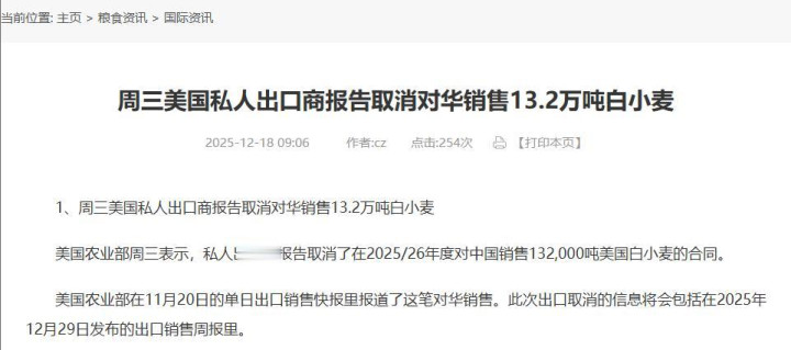 特朗普明明思搞军售赢利,后果我们随即取消了13.2万吨好意思国小麦订单,平直拉出今冬第一张反制牌。下一个可能是豆类、玉米以致是稀土。愿赌服输,别思一边薅羊毛一边逼我们认怂。