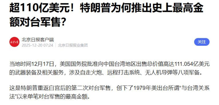 特朗普其实从新到尾齐是思借这笔军售薅“亚洲羊毛”,一边卖110亿好意思元的刀兵,一边冷漠“共存有缠绵”,背后逻辑和对乌克兰雷同:让别东说念主替他耗,我方捞公正。